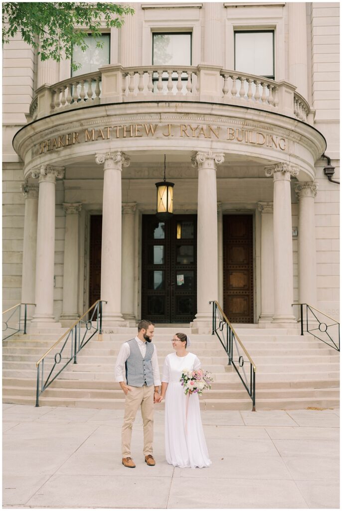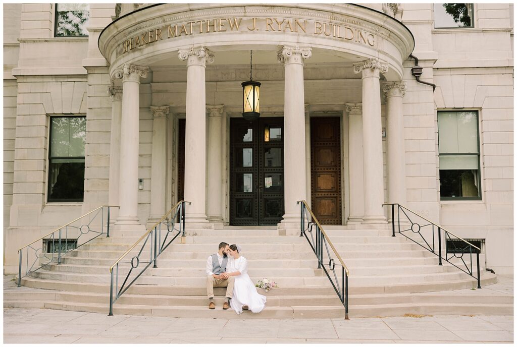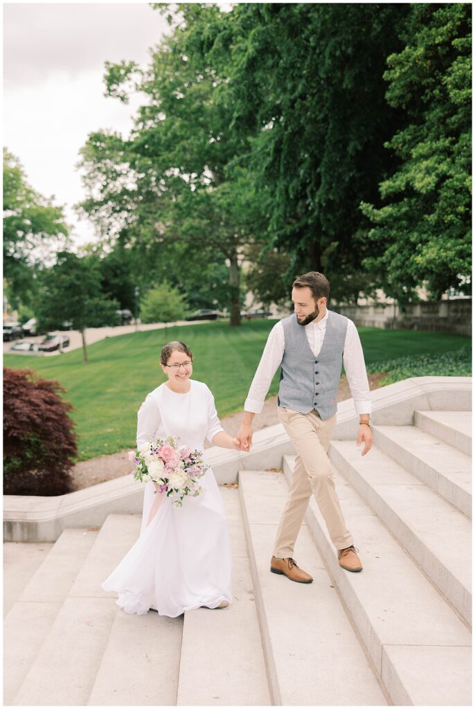 I cannot believe these photos are a few years old already, but they are still some of my favorites! Michelle & Curtis wanted some anniversary photos at the Harrisburg Capitol, and I was so excited to photograph them. Michelle went with the most beautiful handmade dress, and even had the prettiest bouquet of flowers to add a special touch. They are about to become parents to a second little one, so I figured it was finally time to get their beautiful photos from a few years back on the blog!
