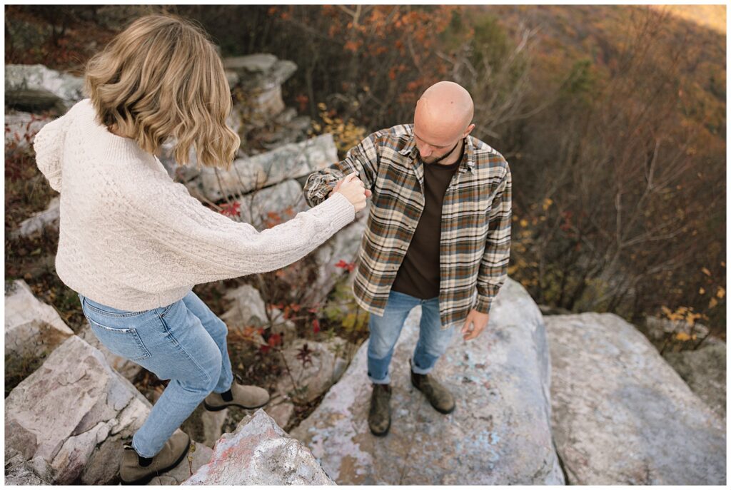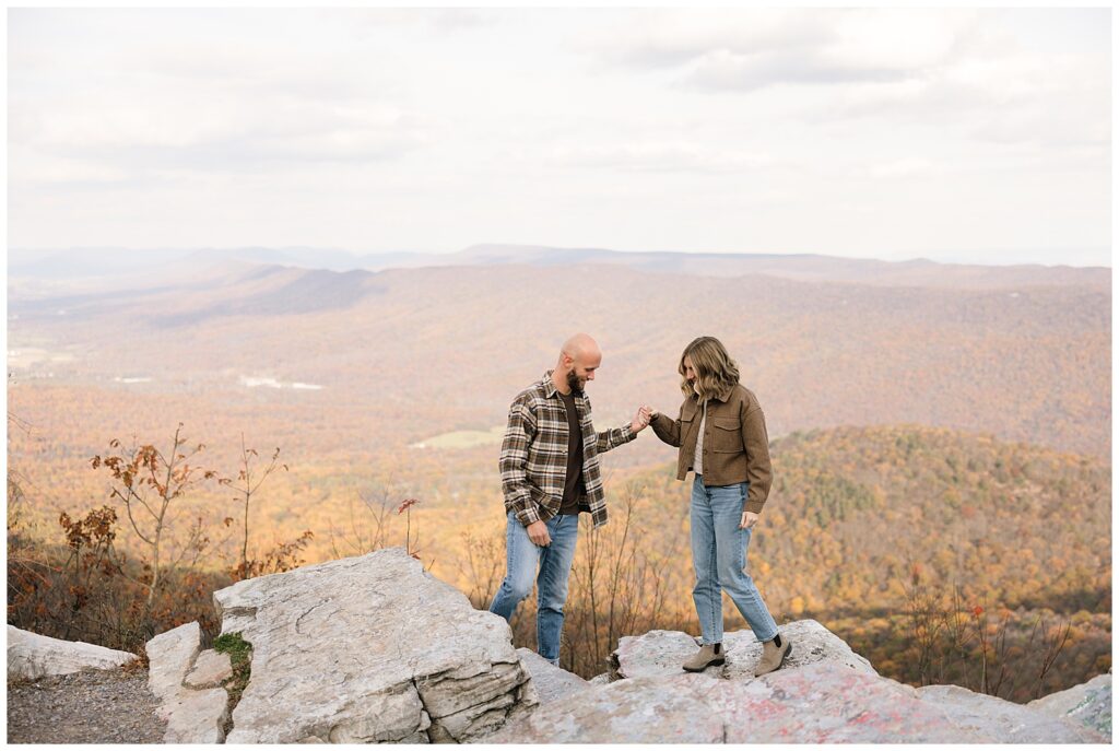 Clayton and Janae chose Cowans Gap for their engagement session, and it was a perfect choice for this beautiful fall session! We had heard of this incredible overlook, and I knew it would be gorgeous at sunset! These two are incredibly adventurous; Clayton proposed in Grant Teton NP, so I had to pick somewhere just as stunning in PA for their engagement photos.